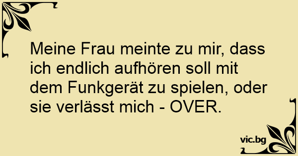 Meine Frau meinte zu mir, dass ich endlich aufhören soll mit dem Funkgerät zu spielen, oder sie verlässt mich - OVER.