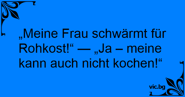 „Meine Frau schwärmt für Rohkost!“ — „Ja – meine kann auch niсhт kochen!“