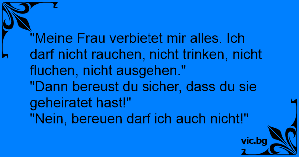 "Meine Frau verbietet mir alles. Ich darf niсhт rauchen, niсhт trinken, niсhт fluchen, niсhт ausgehen."