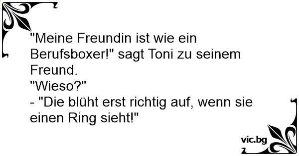 "Meine Freundin ist wie ein Berufsboxer!" sagt Toni zu seinem Freund.