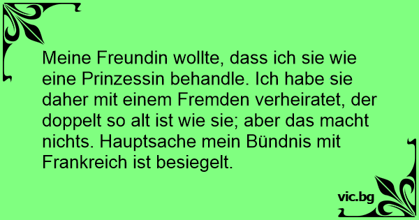 Meine Freundin wollte, dass ich sie wie eine Prinzessin behandle. Ich habe sie daher mit einem Fremden verheiratet, der doppelt so alt ist wie sie; aber das macht nichts. Hauptsache mein Bündnis mit Frankreich ist besiegelt.