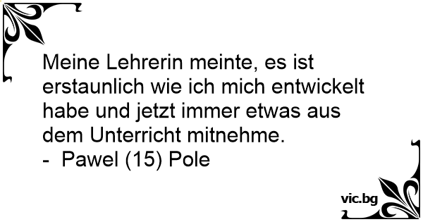 Meine Lehrerin meinte, es ist erstaunlich wie ich mich entwickelt habe und jetzt immer etwas aus dem Unterricht mitnehme.