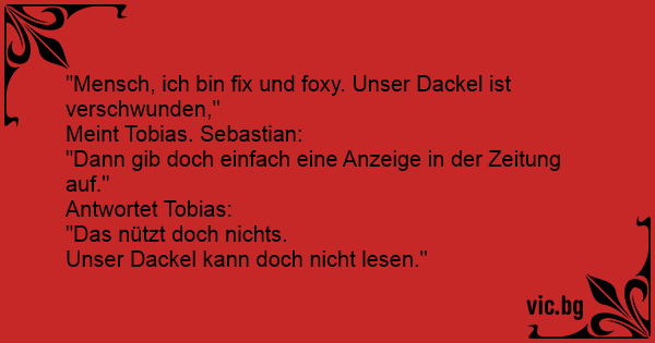 "Mensch, ich bin fix und foxy. Unser Dackel ist verschwunden,"