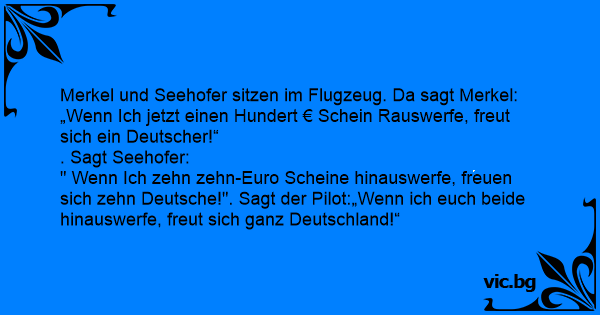 Merkel und Seehofer sitzen im Flugzeug. Da sagt Merkel: