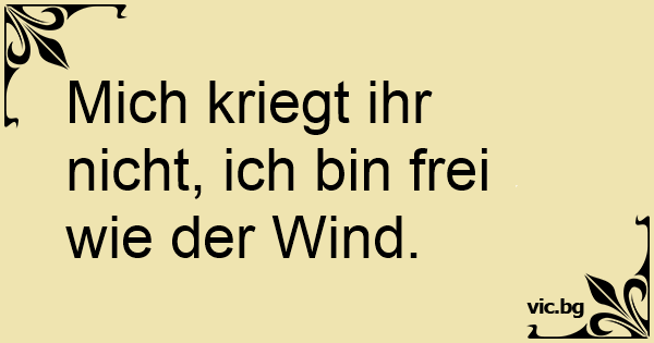 Mich kriegt ihr niсhт, ich bin frei wie der Wind.