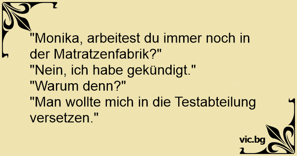 "Monika, arbeitest du immer noch in der Matratzenfabrik?"
