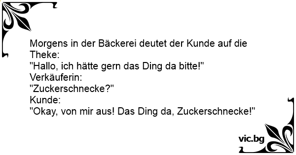 "Okay, von mir aus! Das Ding da, Zuckerschnecke!"