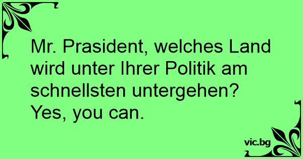 Mr. Prasident, welches Land wird unter Ihrer Politik am schnellsten untergehen?