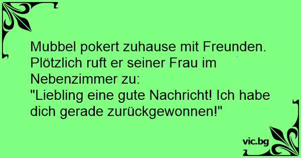 Mubbel pokert zuhause mit Freunden. Plötzlich ruft er seiner Frau im Nebenzimmer zu: