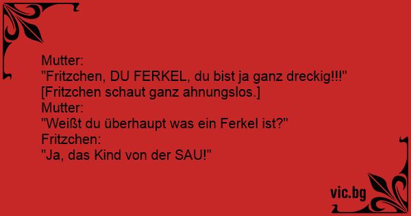 "Fritzchen, DU FERKEL, du bist ja ganz dreckig!!!"