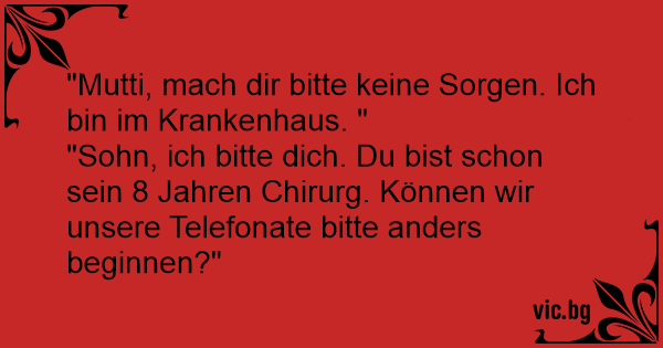 "Sohn, ich bitte dich. Du bist schon sein 8 Jahren Chirurg. Können wir unsere Telefonate bitte anders beginnen?"