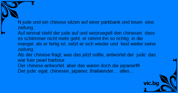 Als der chinese fragt, was das jetzt sollte, antwortet der jude: das war fuer pearl harbour.