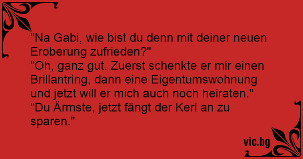 "Oh, ganz gut. Zuerst schenkte er mir einen Brillantring, dann eine Eigentumswohnung und jetzt will er mich auch noch heiraten."