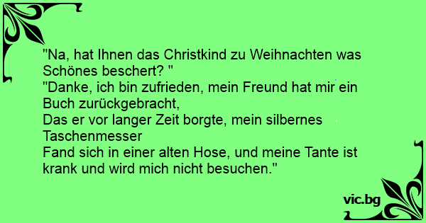"Na, hat Ihnen das Christkind zu Weihnachten was Schönes beschert? "