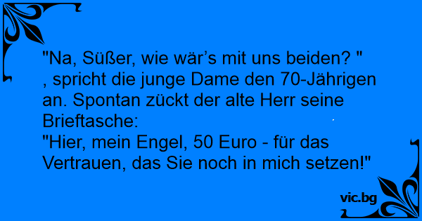 , spricht die junge Dame den 70-Jährigen an. Spontan zückt der alte Herr seine Brieftasche: