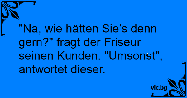 "Na, wie hätten Sie’s denn gern?" fragt der Friseur seinen Kunden. "Umsonst", antwortet dieser.