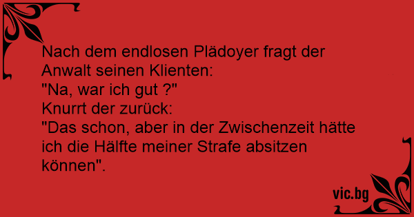 Nach dem endlosen Plädoyer fragt der Anwalt seinen Klienten:
