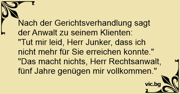 "Das macht nichts, Herr Rechtsanwalt, fünf Jahre genügen mir vollkommen."
