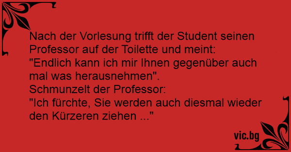 Nach der Vorlesung trifft der Student seinen Professor auf der Toilette und meint: