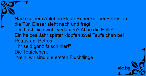 Nach seinem Ableben klopft Honecker bei Petrus an die Tür. Dieser sieht nach und fragt: