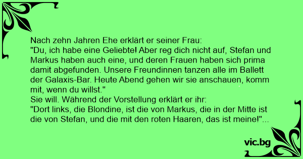Nach zehn Jahren Ehe erklärt er seiner Frau: