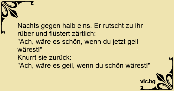 Nachts gegen halb eins. Er rutscht zu ihr rüber und flüstert zärtlich: