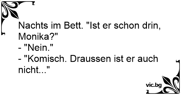 Nachts im Bett. "Ist er schon drin, Monika?"