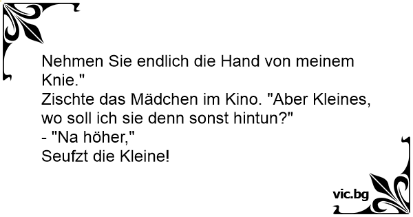 Zischte das Mädchen im Kino. "Aber Kleines, wo soll ich sie denn sonst hintun?"