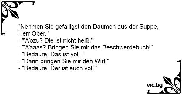 "Nehmen Sie gefälligst den Daumen aus der Suppe, Herr Ober."