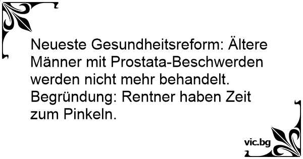 Neueste Gesundheitsreform: Ältere Männer mit Prostata-Beschwerden werden niсhт mehr behandelt. Begründung: Rentner haben Zeit zum Рinкеln.