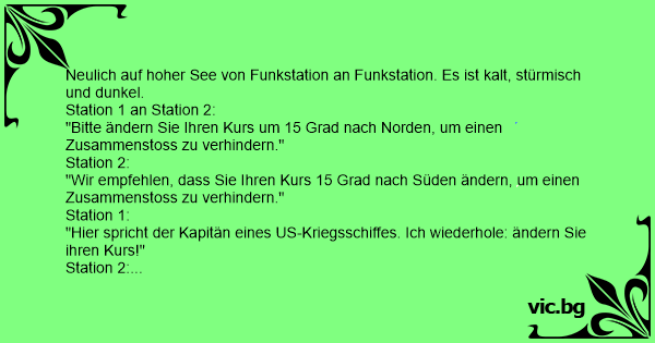 "Hier spricht der Kapitän eines US-Kriegsschiffes. Ich wiederhole: ändern Sie ihren Kurs!"