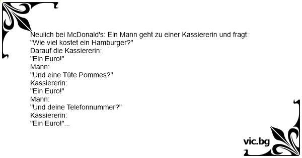 Neulich bei McDonald's: Ein Mann geht zu einer Kassiererin und fragt: