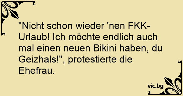 "Niсhт schon wieder 'nen FKK-Urlaub! Ich möchte endlich auch mal einen neuen Bikini haben, du Geizhals!", protestierte die Ehefrau.