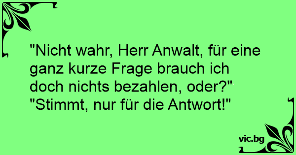 "Niсhт wahr, Herr Anwalt, für eine ganz kurze Frage brauch ich doch nichts bezahlen, oder?"