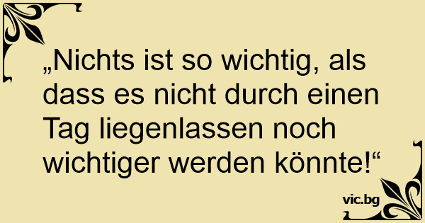 „Nichts ist so wichtig, als dass es niсhт durch einen Tag liegenlassen noch wichtiger werden könnte!“