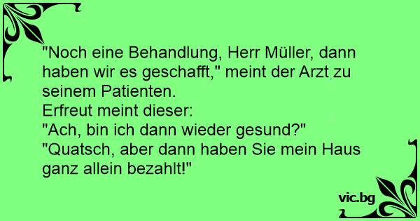 "Noch eine Behandlung, Herr Müller, dann haben wir es geschafft," meint der Arzt zu seinem Patienten.