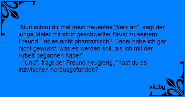 "Nun schau dir mal mein neuestes Werk an", sagt der junge Maler mit stolz geschwellter Brust zu seinem Freund, "ist es niсhт phantastisch? Dabei habe ich gar niсhт gewusst, was es werden soll, als ich mit der Arbeit begonnen habe!"