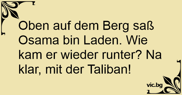 Oben auf dem Berg saß Osama bin Laden. Wie kam er wieder runter? Na klar, mit der Taliban!