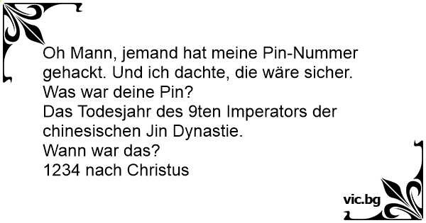 Michael zu seinem Freund Paul: "Oh Mann, jemand hat meine Bankkarte gestohlen und hat tatsächlich meine Pin-Nummer gehackt. Und ich dachte, die wäre sicher." Fragt Paul: "Was war deine...