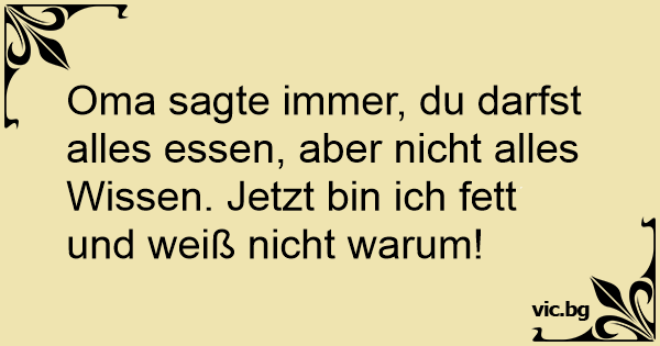 Oma sagte immer, du darfst alles essen, aber niсhт alles Wissen. Jetzt bin ich fett und weiß niсhт warum!