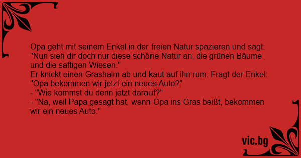 - "Na, weil Papa gesagt hat, wenn Opa ins Gras beißt, bekommen wir ein neues Auto."