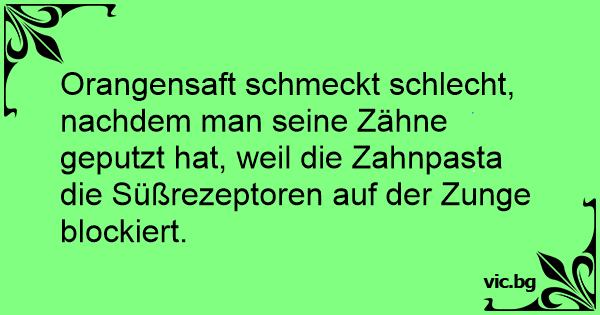 Orangensaft schmeckt schlecht, nachdem man seine Zähne geputzt hat, weil die Zahnpasta die Süßrezeptoren auf der Zunge blockiert.