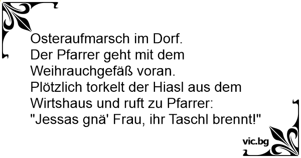 Plötzlich torkelt der Hiasl aus dem Wirtshaus und ruft zu Pfarrer: