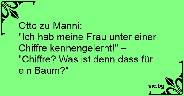 "Ich hab meine Frau unter einer Chiffre kennengelernt!" – "Chiffre? Was ist denn dass für ein Baum?"