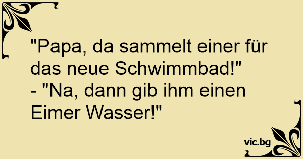 - Mamma, det er en mann på døra som samler inn til det nye svømmebassenget. - Så, gi han et glass vann, da.