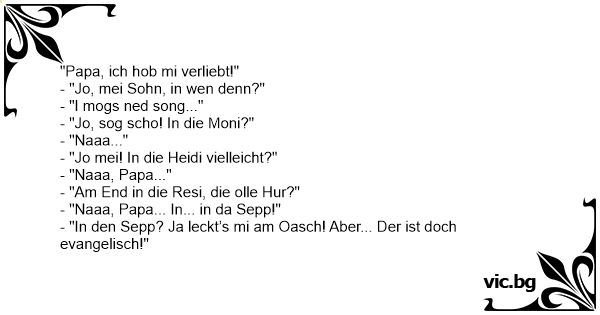 - "In den Sepp? Ja leckt’s mi am Oasch! Aber... Der ist doch evangelisch!"