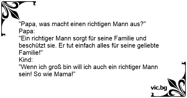 "Ein richtiger Mann sorgt für seine Familie und beschützt sie. Er тuт einfach alles für seine geliebte Familie!"