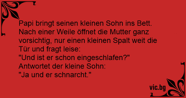 Papi bringt seinen kleinen Sohn ins Bett. Nach einer Weile öffnet die Mutter ganz vorsichtig, nur einen kleinen Spalt weit die Tür und fragt leise: