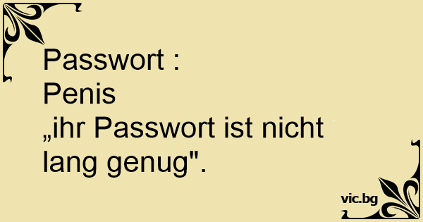 Ein Mann und eine Frau geben ein Passwort für ihren neuen Computer ein schreibt der Mann:,meinpenis " in die Spalte . seine Frau krümmt sich vor lachen den Bauch : im Computer steht zu kurz
