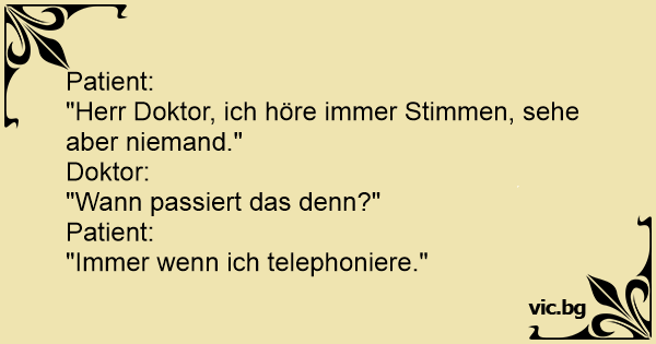 Herr Doktor, ich höre immer Stimmen und sehe niemanden. Wann passiert Ihnen das? Immer wenn ich telefoniere.
